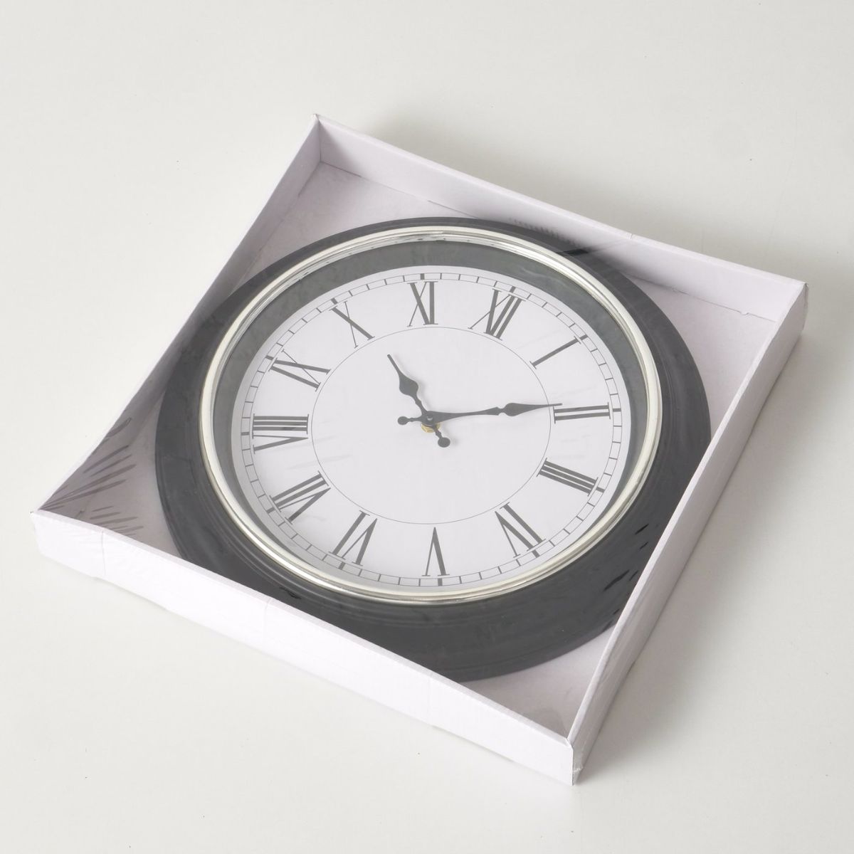 Adaugă o notă de eleganță clasică oricărui spațiu cu acest ceas de perete rotund în nuanțe contrastante de alb și negru. Designul său minimalist este pus în valoare de cadranul cu cifre romane elegante, care oferă un aer sofisticat și atemporal.