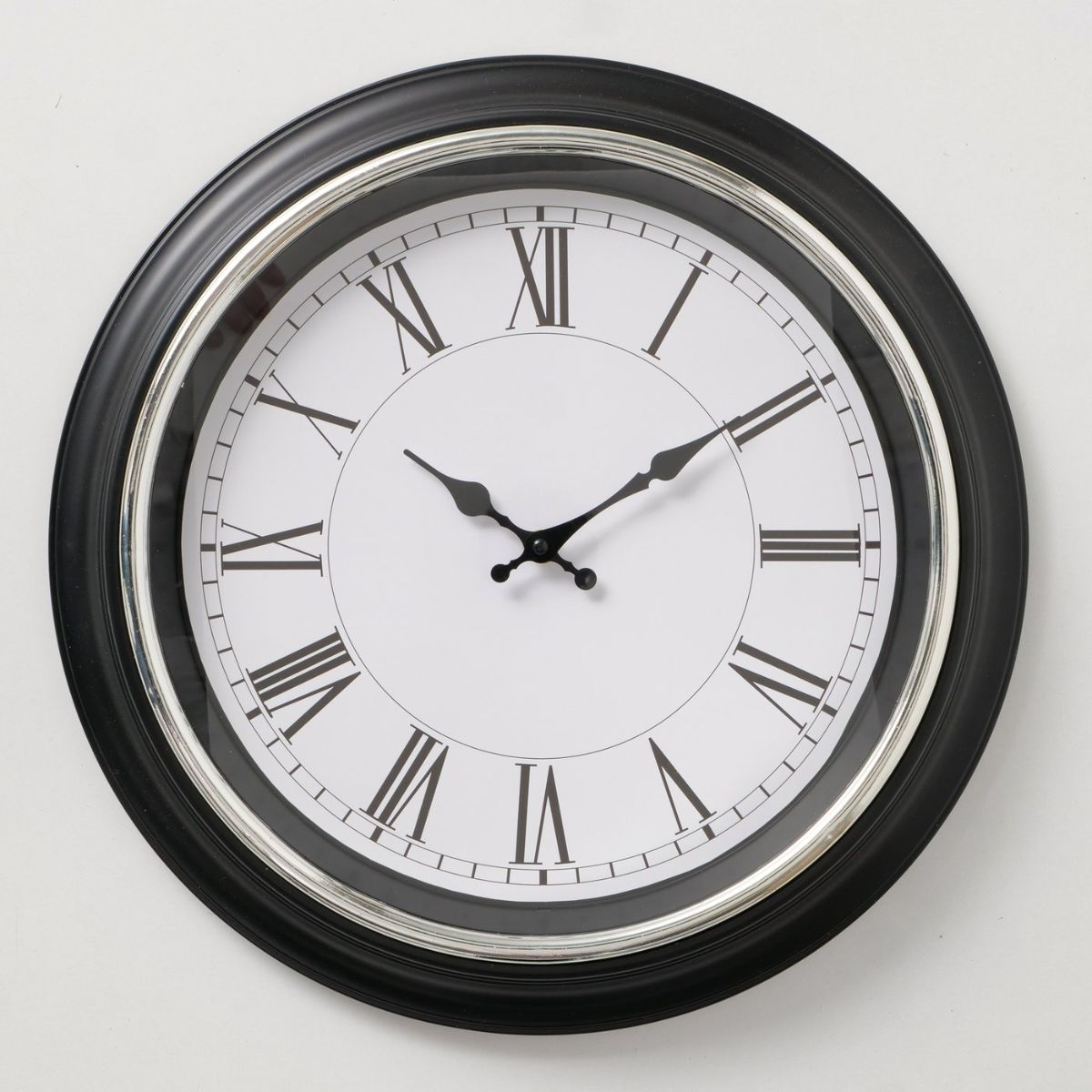 Ceas de perete rotund alb-negru cu cifre romane – Ø 40 cm