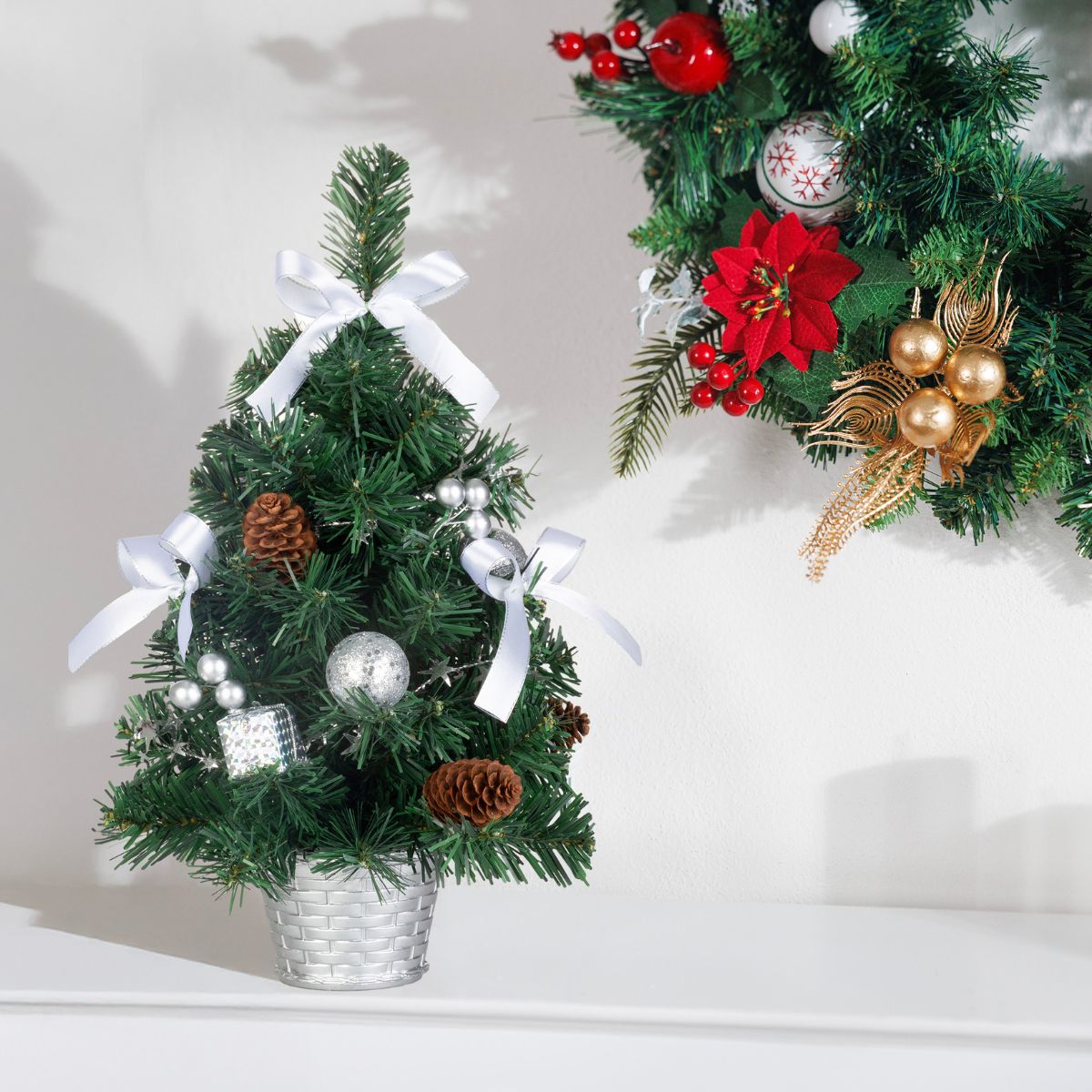 Brad artificial de Craciun MagicHome, impodobit, argintiu, funda, 40 cm