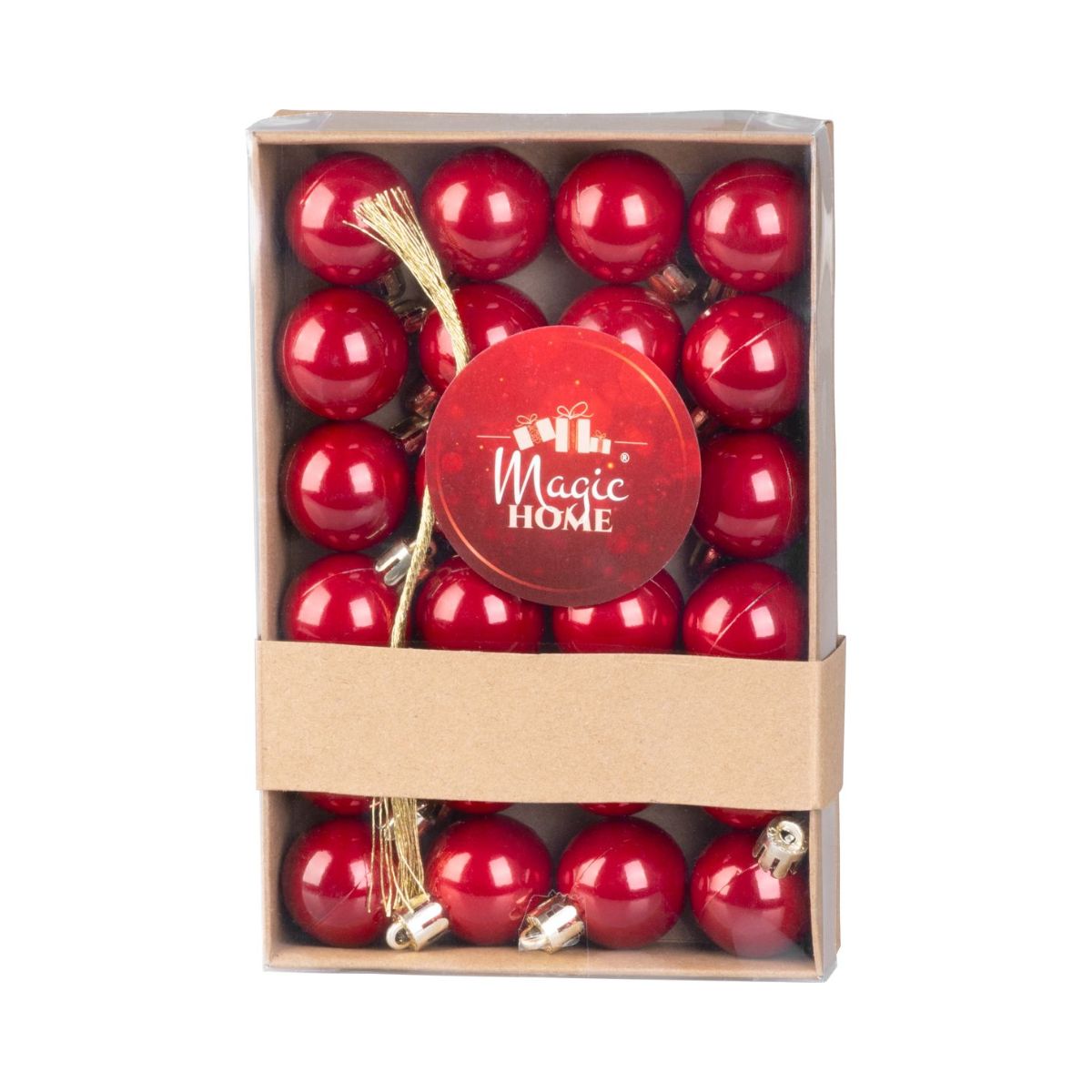 Setul de decoratiuni pentru brad este folosit pentru impodobirea festiva a bradului. Este format din 24 de globuri de Craciun cu diametrul de 3 cm. Culoarea este rosie. Sunt realizate din plastic.