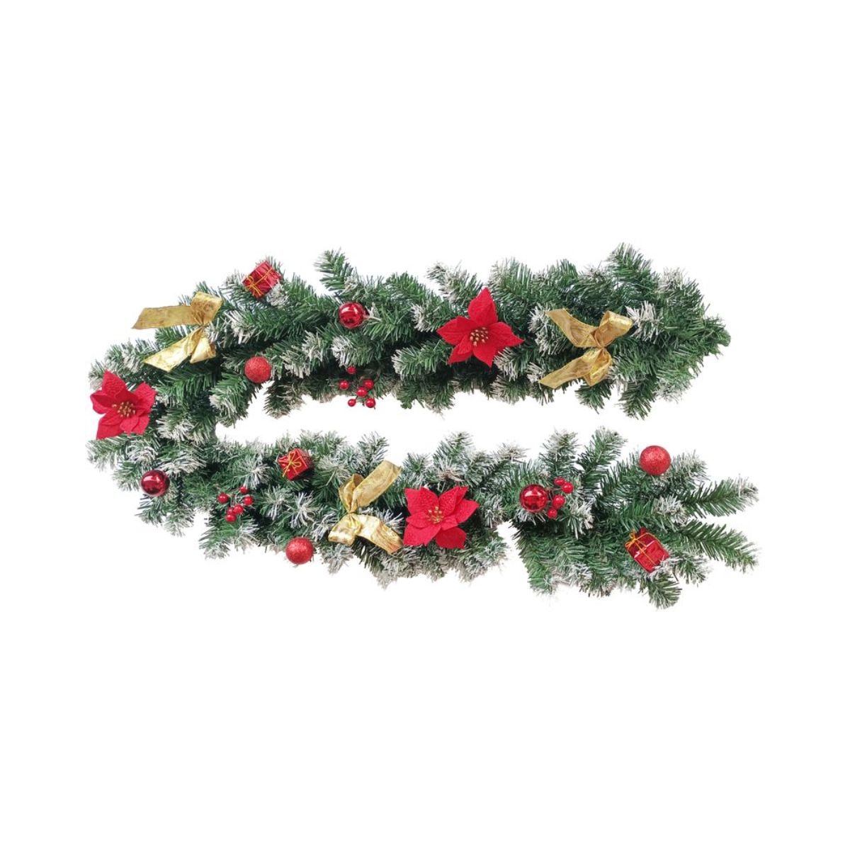Ghirlandă de Crăciun MagicHome – 180 cm, verde cu funde aurii și crăciunițe roșii