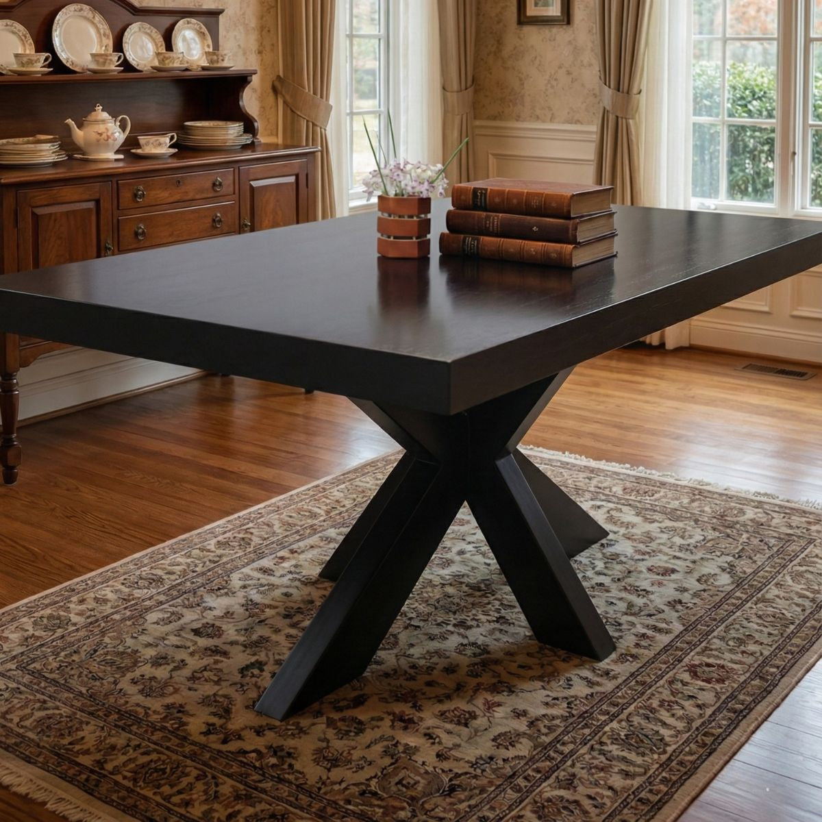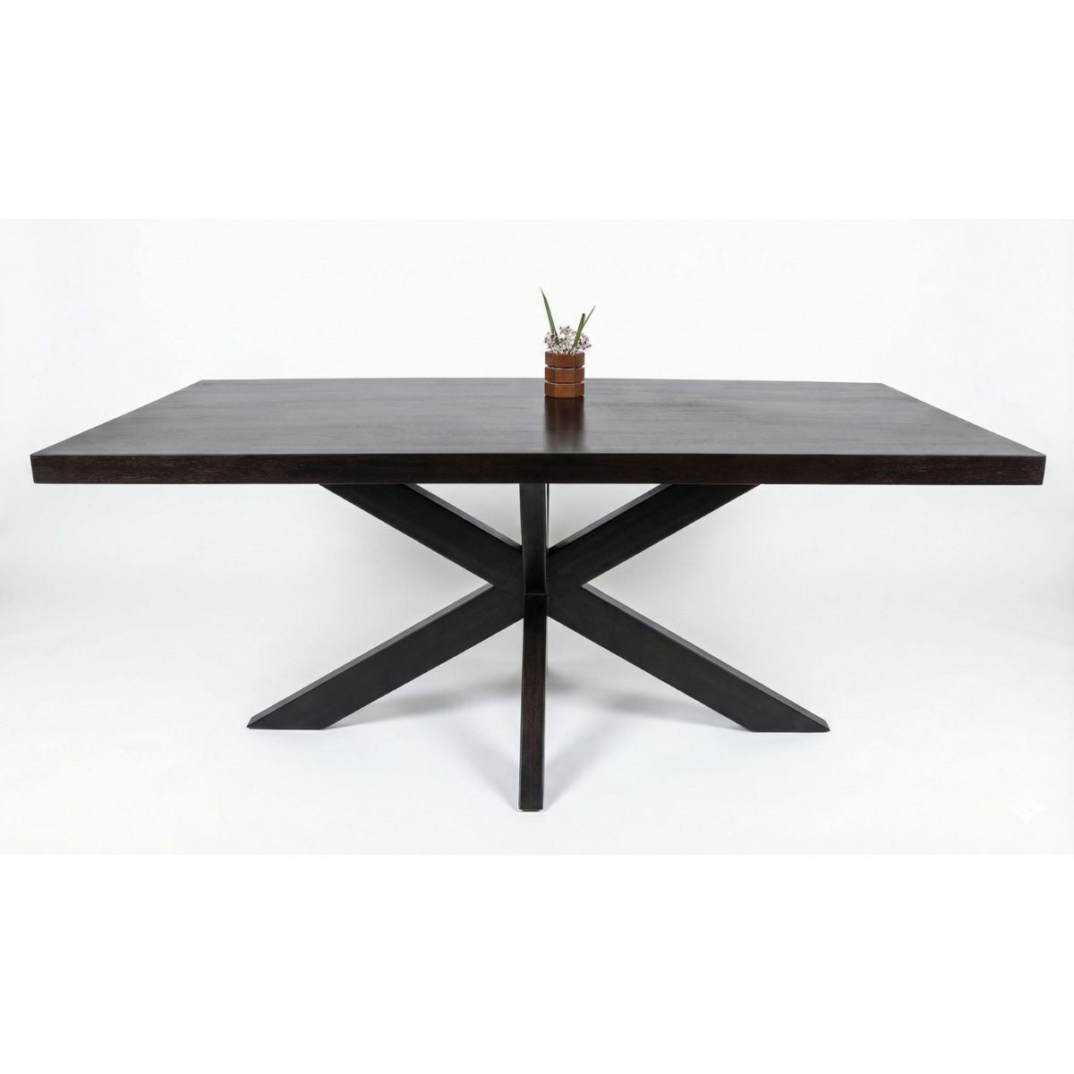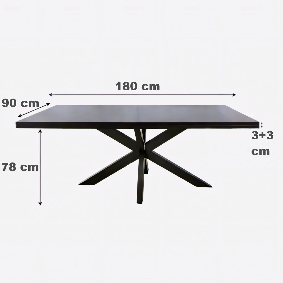 Masa „Chakra Star” combină durabilitatea lemnului masiv de mango cu un design modern și elegant, perfect pentru orice dining. Blatul de 30 mm grosime este întărit pe partea inferioară cu o ramă suplimentară din același lemn, care dublează grosimea la 60 mm, oferind rezistență sporită și un aspect solid. Finisajul negru al blatului conferă un aer sofisticat și contemporan.