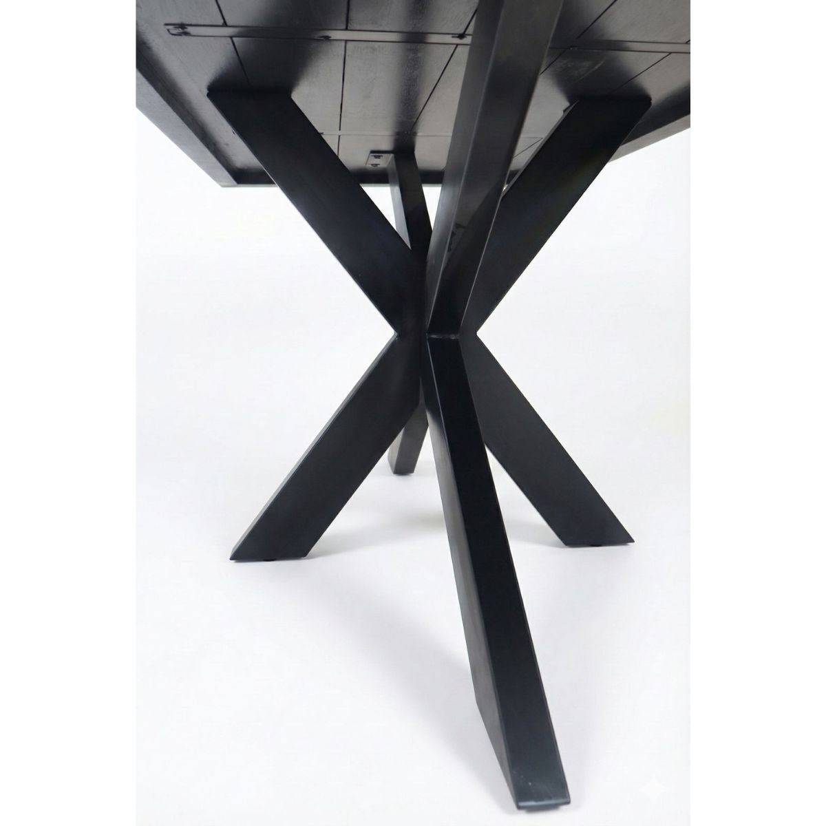 Structura metalică cu design star (spider), secțiune 10x5 cm, oferă stabilitate maximă și suficient spațiu pentru picioare, completând armonios stilul industrial al mesei.
