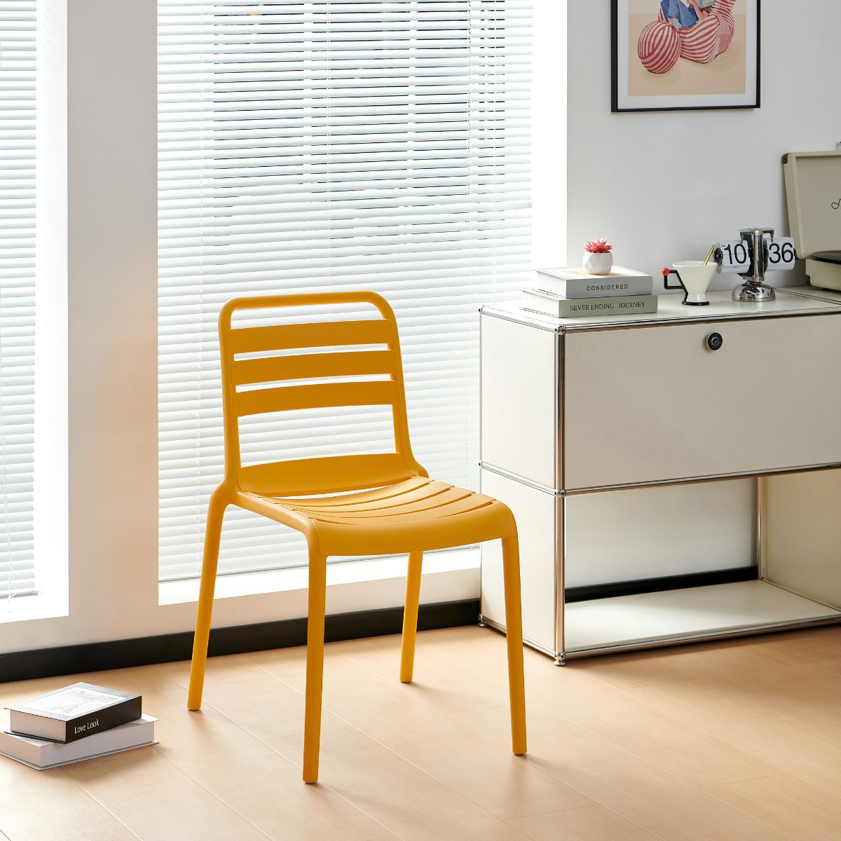 Este ideal pentru mesele de exterior unde spațiul este prețios, permițând scaunelor să fie glisate complet sub masă atunci când nu sunt utilizate.