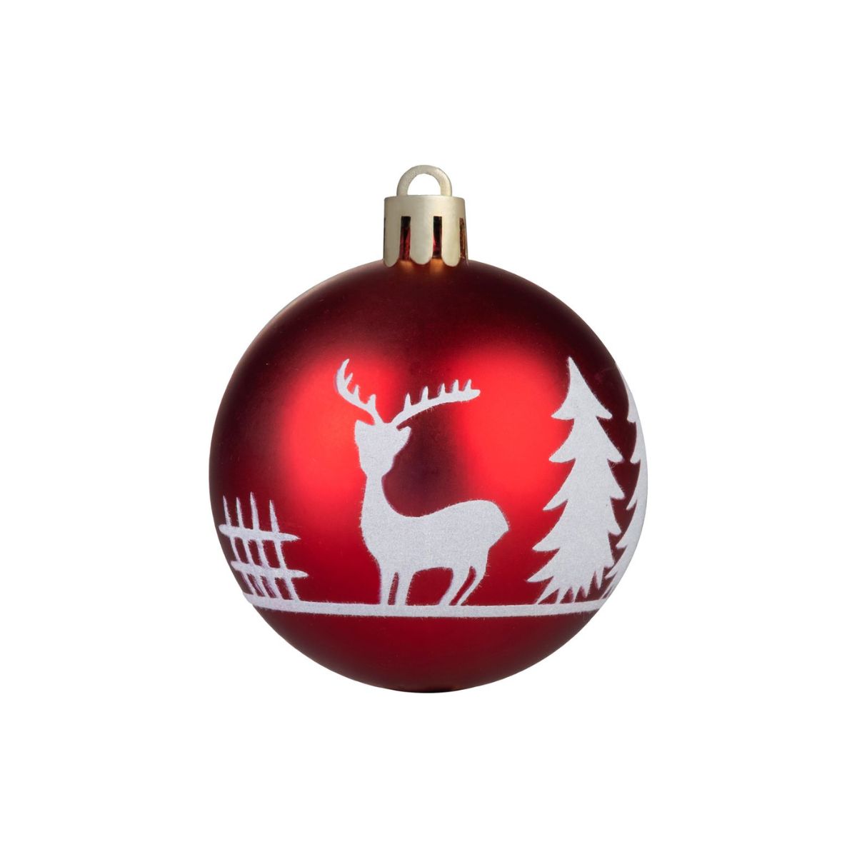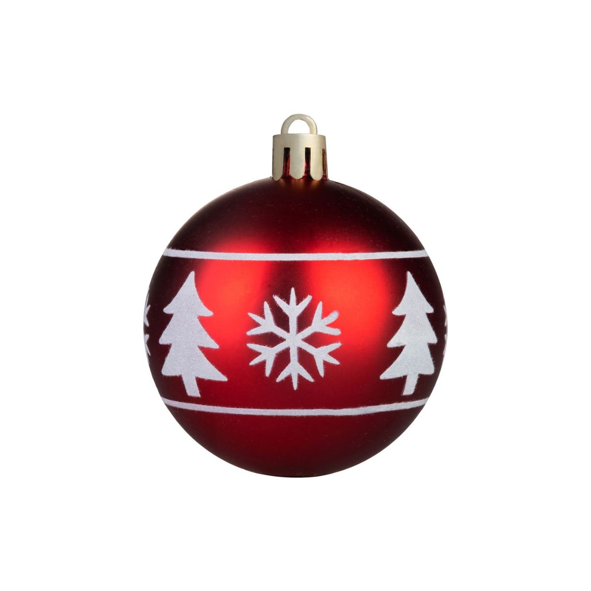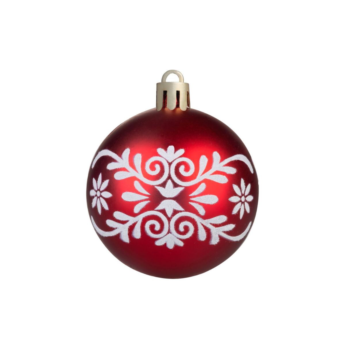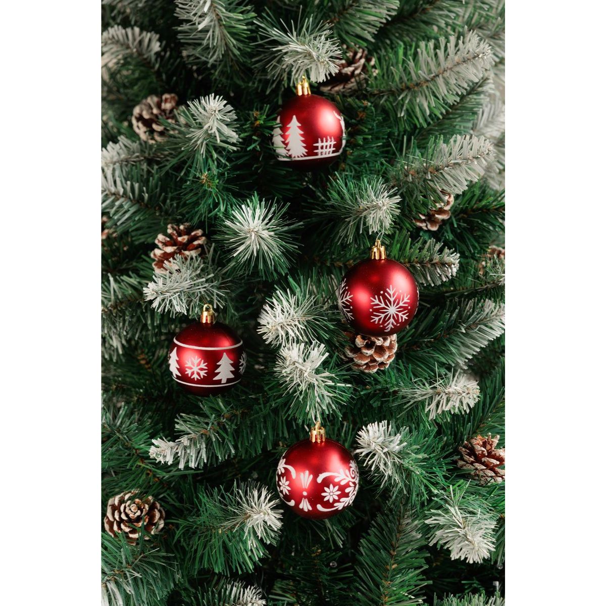 Set globuri MagicHome Vianoce – 12 bucăți, 6 cm, roșii cu ornament alb