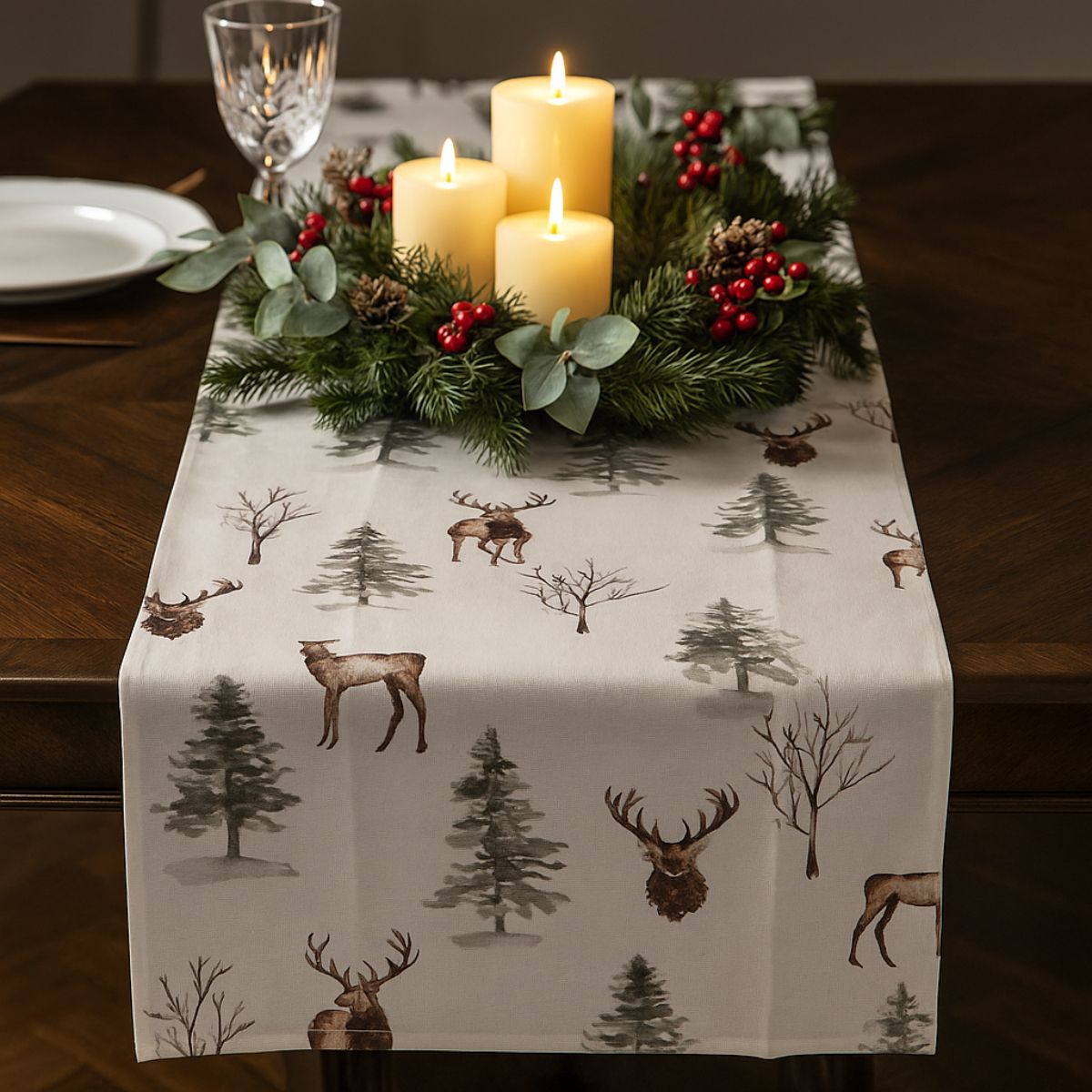 Oferă-i mesei tale de Crăciun o notă festivă cu această față de masă din material textil. Modelul colorat cu cerbi adaugă o notă distractivă și festivă, perfectă pentru a combina funcționalitatea cu stilul.