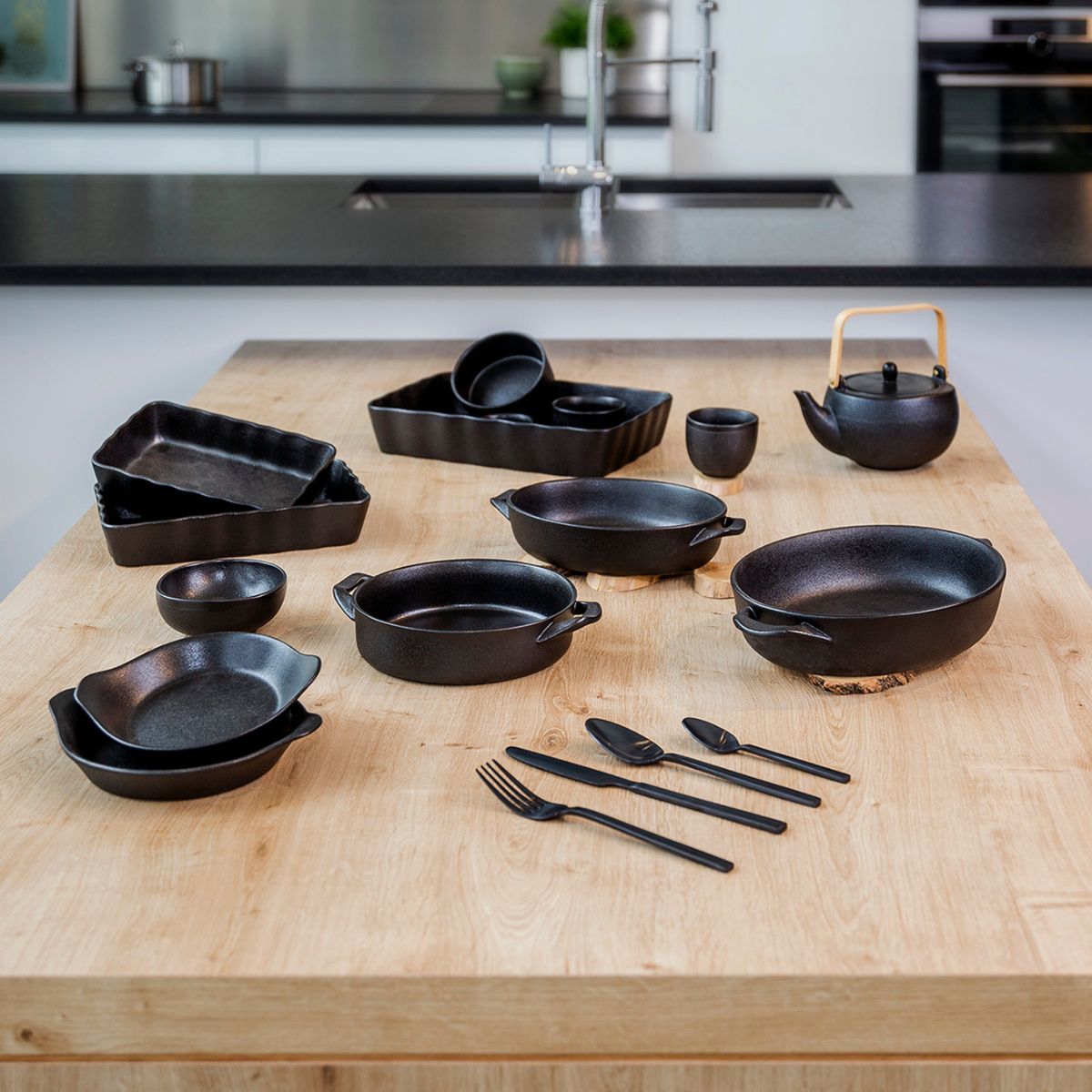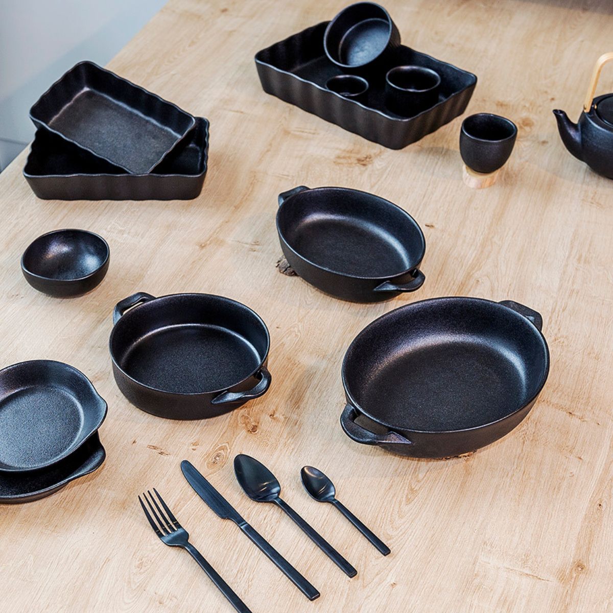 Acest vas de cuptor Yara de la Cosy & Trendy de 1,04 litri are un aspect unic și clasic, dar în acelaasi timp contemporan. Culoarea neagră mat adânc și suprafața granulată specială amintesc de fontă, însa această serie Yara este de fapt realizată din ceramică.