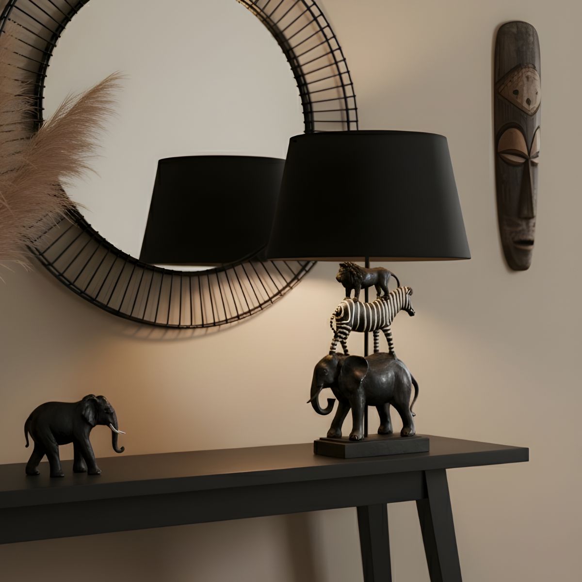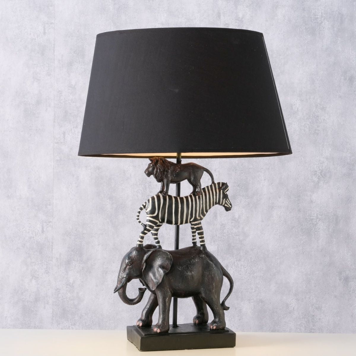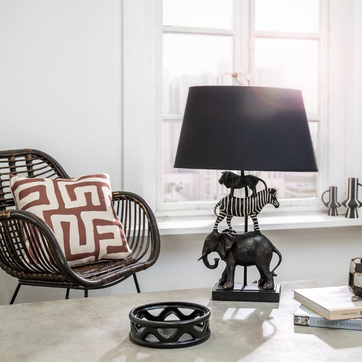 Lampa de masă Zumo impresionează prin designul său modern și formele neobișnuite de elefanți, lei și zebre. Fabricată din polirășină și pictată manual cu un finisaj mat, oferă un plus elegant colecțiilor sofisticate.